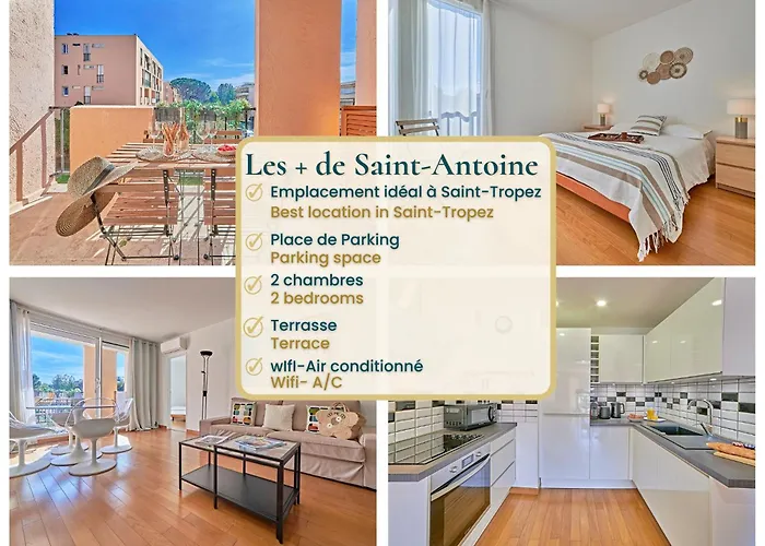 Located at a distance of 3.7 km from Chateau Pampelonne, the 1-room Saint Antoine-City Center St-Tropez-Terraceparking features a free private car park for those who travel by car. The apartment lies at a distance of 4.1 km from Eglise de Sainte-Maxime Catholic Church.